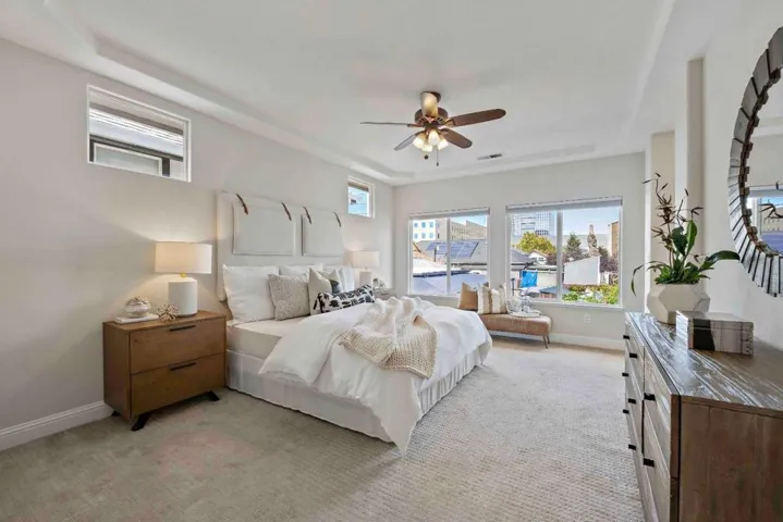 Experience the perfect balance of style, comfort, and downtown living. Tucked at the end of a lovely tree-lined street in the vibrant Arts District, this spacious blend of traditional Craftsman elements with modern updates offers an abundance of thoughtfully designed space. Built in 1999, it’s one of only a handful of newer single-family homes in the downtown area – blending modern convenience with classic charm. The open-concept floor plan features hardwood floors, natural light, and seamless flow for everyday living and entertaining. The kitchen, with its large island and walk-in pantry, adjoins a comfortable family room with a cozy fireplace. Upstairs, the generous primary suite is filled with light and offers a walk in closet, an additional closet and a bright bath with soaking tub and dual sinks. Two additional bedrooms and a flexible bonus room upstairs provide space for kids, work, guests, or creativity. Enjoy a private backyard, owned solar panels, dual-pane windows, laundry room, and a two-car tandem garage with Level 2 EV charging and overhead storage. Just moments from The Children’s Discovery Museum, galleries, theaters, restaurants, farmers markets, festivals, and walking trails, this rare single-family home offers the best of San Jose’s exciting downtown vibrancy.