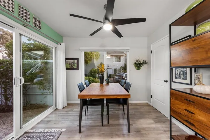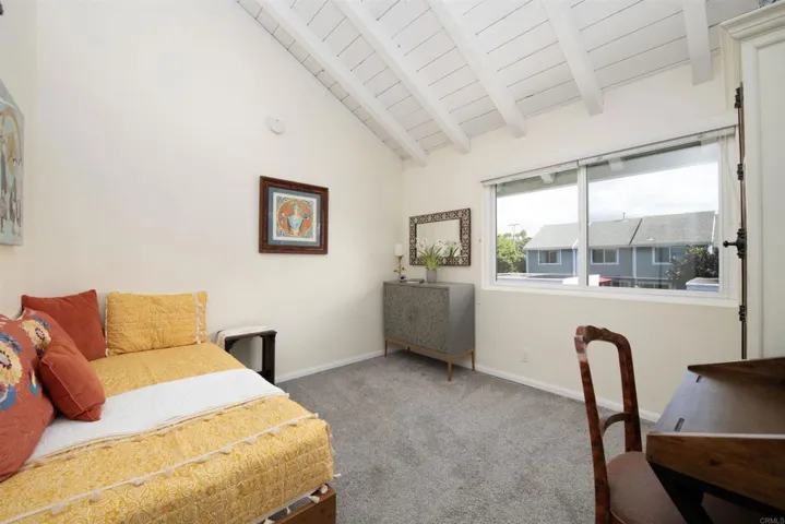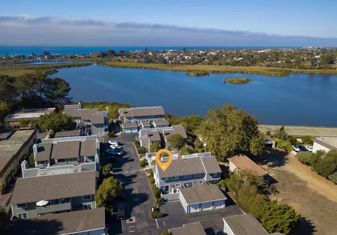Welcome to your own corner of paradise—West of the 5 walking distance to the heart of CARLSBAD VILLAGE! Nestled between the Pacific Ocean and Buena Vista Lagoon, this charming corner-unit townhome captures the essence of coastal living, with ocean breezes and peaceful views. The light-filled interior features vaulted ceilings, an inviting living room with fireplace, and an upgraded kitchen with granite countertops, dining area, and plenty of storage. From the living room, enjoy a rare sit-down ocean view—perfect for relaxing and soaking in Carlsbad’s coastal charm. The kitchen and living spaces flow seamlessly to a private patio—perfect for morning coffee or relaxing by the fire pit with a glass of wine. Recent upgrades include double-pane windows for energy efficiency, a newer refrigerator, dishwasher, garbage disposal, microwave, and water heater. The private patio has been thoughtfully improved to create a relaxing outdoor retreat, perfect for morning coffee or evening gatherings. The garage has also been updated with new shelving for additional storage and organization. Upstairs, expansive windows in the primary suite offer peek ocean and lagoon views that make every day feel like a vacation. Two additional spacious bedrooms provide abundant natural light and flexibility for children, guests, or home office. Complete with a finished one-car garage attached to the patio, plus an adjacent, assigned parking space, this home is just a short stroll to Carlsbad’s beaches, shops, theater, art gallerys, and fine dining. This low-density community is located in the heart of Carlsbad’s award winning school district. This is Coastal Village living at its finest.