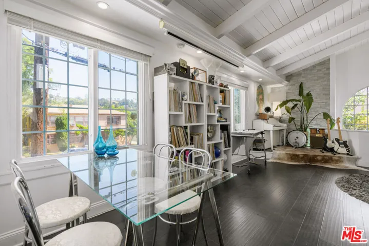 Calling all creatives! This is a one of a kind, versatile and very quiet home in the heart of Hollywood and the Hollywood Hills. In its former life this property served as a recording studio and its quadruple-pane windows promise tranquility, despite being central to so many of our fair city’s offerings – Pantages, Runyon Canyon, The Hollywood Sign, The Hollywood Bowl and more. The upper floor features a bright and open living area, with vaulted ceilings, a stage, welcoming kitchen with granite counters and stainless steel appliances, sophisticated powder room and a sunken primary bedroom with en suite bath. The lower level offers a roomy 2nd bedroom plus a wonderful bonus space which has been generating income as a well-reviewed short-term rental unit, complete with charming kitchenette + private bedroom & bath. There’s also a 2 car garage and sweet outdoor seating area. This is one of those L.A. properties you must see to fully appreciate. A great loft alternative that’s filled with positive rock-star energy. **Title shows 2 beds/2 baths; Sellers purchased it in its current configuration. Buyers to investigate.