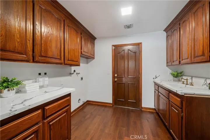 The lower level enhances the home’s livability with a spacious family room and built-in bar, a private in-law suite with full bath, a dedicated laundry room with sink, and an additional powder room for guests.