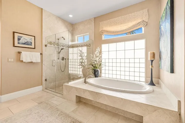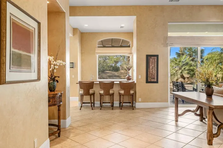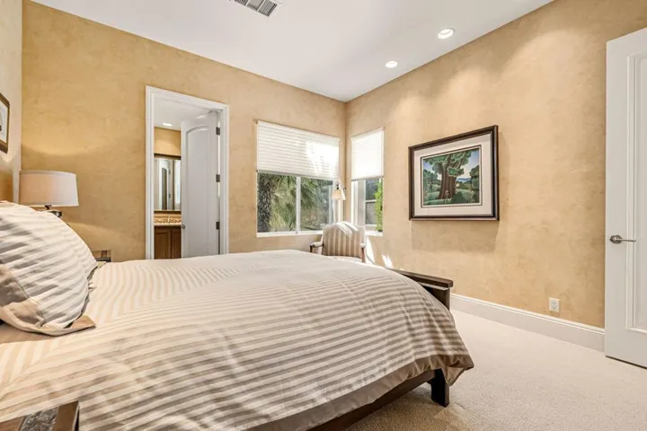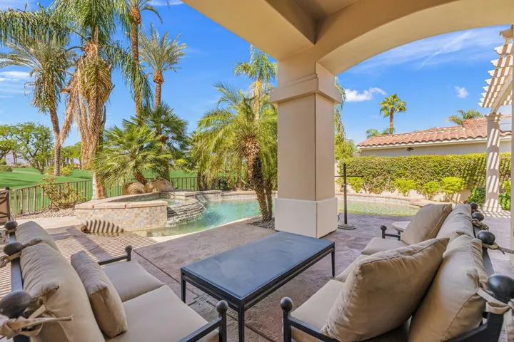 A Rare Find in Indian Ridge Country Club. Built in 2006, this stunning Ocotillo 3G is one of the newest homes in Indian Ridge and sits on a rare two-lot parcel. With 3,869 square feet of luxurious living space, the home features 4 bedrooms and 4.5 baths including a private guest casita, perfectly designed for comfort and privacy. Step inside and you’ll find beautiful custom upgrades throughout, from granite slab counters and GE Monogram appliances to wool carpeting, Venetian plaster walls, and remote-controlled shades. Every detail reflects quality and sophistication, complemented by high-end furnishings included in the sale. The outdoor living space is your private resort complete with multiple seating areas, a sparkling saltwater pool and spa (accessible directly from the primary suite), and breathtaking west-facing views of the San Jacinto Mountains across the Grove’s 9th fairway. The pool features a new filter pump and heater, and its interior was recently bead blasted for a fresh, like-new finish. Located within the HOA section, your monthly dues conveniently cover exterior landscaping, roof maintenance, exterior painting, fire insurance on the structure, cable, Wi-Fi, and trash service, allowing you to truly relax and enjoy the desert lifestyle. Best of all, this home includes a registered Golf Membership, eliminating the waitlist. Just a short stroll from the clubhouse, dining, fitness center, and tennis and pickleball courts, everything you need is right at your fingertips. Discover easy luxury, timeless design, and effortless living in one of Indian Ridge’s most desirable locations.