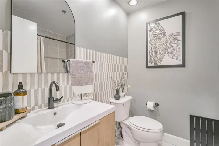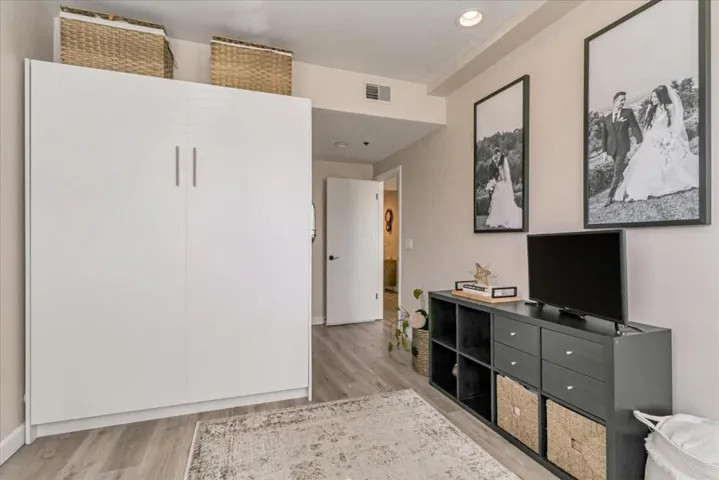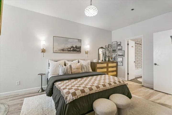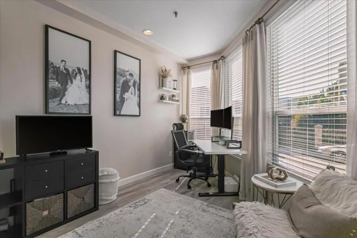 This beautifully updated home, an end unit, features a modern kitchen with newly installed floor tiles and quartz counter tops, along with renovated bathroom floor tile and vanities – all professionally done within the last 2 years. Enjoy the convenience of an assigned garage parking spot right near the elevator and garage door, plus private street parking (just register your vehicle with the city) and additional parking in adjacent lots. Located within walking distance to SAP Center and San Pedro Square, and just across the street from a dog park, this home offers an ideal location for work, play and relaxation. With easy access to Highways 280 and 87, as well as Caltrain and VTA stations, commuting is a breeze. The south facing windows provide an abundance of natural light all day long, and the direct street access to your front door eliminates the hassle of elevators or access keys. Additional amenities include secure lock mailboxes and parcel lockers, a gym room, event space, central AC and heating, a newer stainless steel sink, oven and fresh paint throughout.