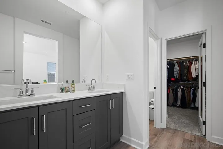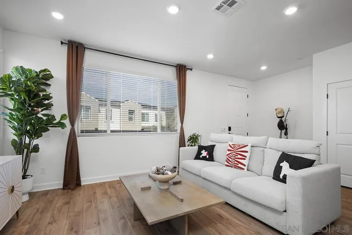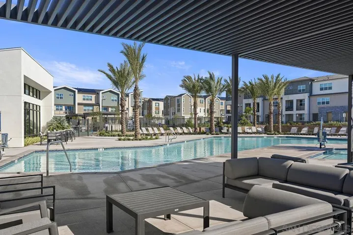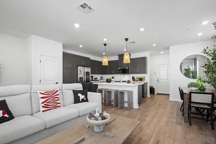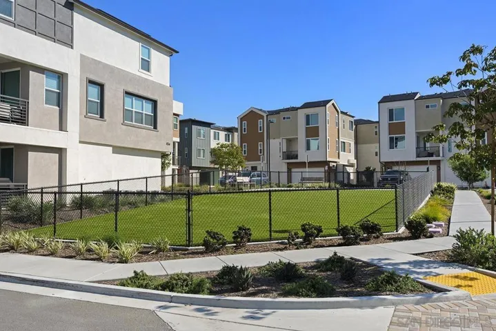 Stunning newer construction end unit townhome in a quiet, bright, and breezy location featuring 4 bedrooms and 2.5 bathrooms. Upon entry you are greeted to an open concept floor plan with your formal great room open to your oversized Chef’s kitchen. Custom fixtures galore and home features solar and EV charging! Generous sized primary bedroom with ensuite bathroom featuring a spacious walk-in closet. Three secondary bedrooms and an upstairs hall bath with modern finishes. Laundry room conveniently located upstairs. Two car attached garage. Beautifully designed master plan community featuring community amenities with a pool, clubhouse, basketball court, picnic area, dog parks, exercise room, pickle ball, playground/tot lots, BBQ, and more! Convenient access to the 805 freeway, Ralph’s Grocery, Sharp Medical Center, etc. This is a must see!