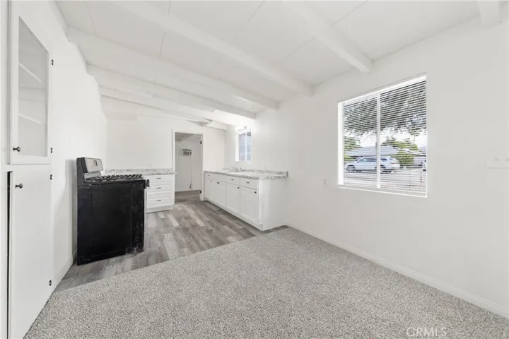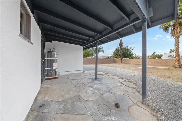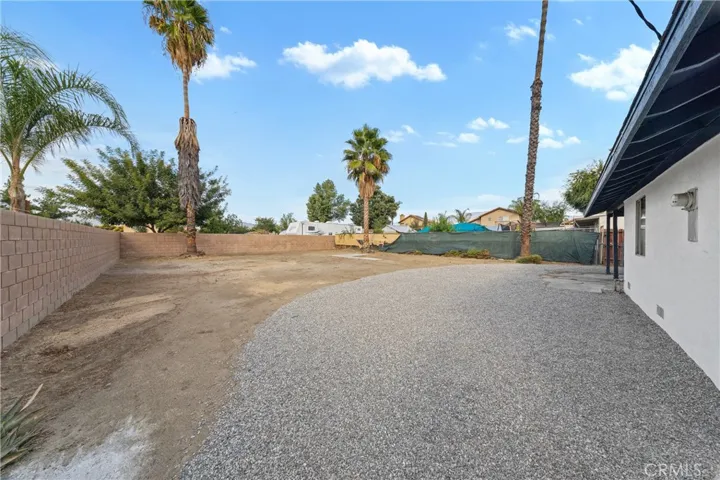 Freshly renovated 3 bedroom 1 bath home on large lot located in desirable Southeast Hemet. Living room has beamed ceiling and wood-burning fireplace. Kitchen has new granite-look laminated counter tops, gas stove, and built-in bookcase perfect for cookbooks and knickknacks. Full bathroom with new vanity and toilet, shelves, and tub/shower with decorative glass tile-work. Inside laundry/mud room. Linen closet. New paint and carpet. 3 wall ACs and gas wall furnace. Front and rear security screen doors. Covered patio. Block wall fencing on 2 sides. Side yard access to backyard wide enough for a car or a small boat or trailer. Rock-scaped front yard with huge shade tree.