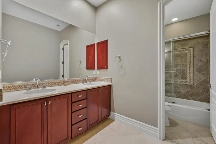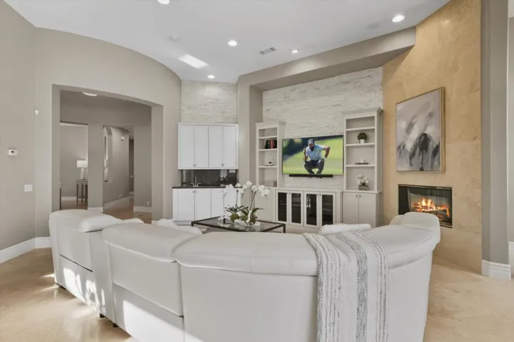 Discover the perfect Mountain View CC rental, blending vibrant social amenities with premier golf access! For a one-time $750 social membership transfer fee, tenants enjoy exclusive clubhouse dining, pickleball, tennis, bocce, a state-of-the-art fitness center, engaging fitness classes, a sparkling community pool, and a lively calendar of social events. Golf transfer rates vary by lease term–contact us for details. Entertain in style in the expansive, beautifully landscaped backyard, featuring a private pool, raised spa, covered paver patio, built-in BBQ, and a fire dining table. The charming front paver courtyard, shaded by a covered pergola, offers additional seating for relaxation. Inside, the gourmet granite kitchen boasts an island breakfast bar, stainless steel appliances, a gas cooktop, a pantry, and a cozy dining table for four. The inviting great room, complete with a fireplace, smart TV, and adjacent bar, seamlessly opens to the backyard pool area. Host elegant dinners in the formal dining room, perfect for six. Retreat to the luxurious primary suite with a king bed, smart TV, and French doors leading to the backyard oasis. Its ensuite bath features dual vanities, a dressing table, a separate tub and shower, and a spacious walk-in closet with ample storage. The generously sized second bedroom suite offers a queen bed, smart TV, desk, large closet, and a bath with dual vanities and a shower-over-tub. The private casita, accessible from the courtyard, includes a king bed and a bath with dual vanities and a walk-in shower. A convenient laundry room with an extra refrigerator, a powder room, and a two-car attached garage with golf cart space complete this exceptional home. Owner pays HOA, pool/gardener service, water, cable, internet and gas/electric with $400 month cap for combined gas/electric.