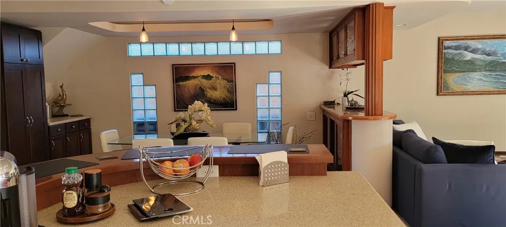 The fully equipped gourmet kitchen and formal dining are completely remodeled with quartz counter tops, beautiful custom cabinetry, and stainless steel appliances. The huge center island bar offers added seating for dining in addition to the formal dining area.