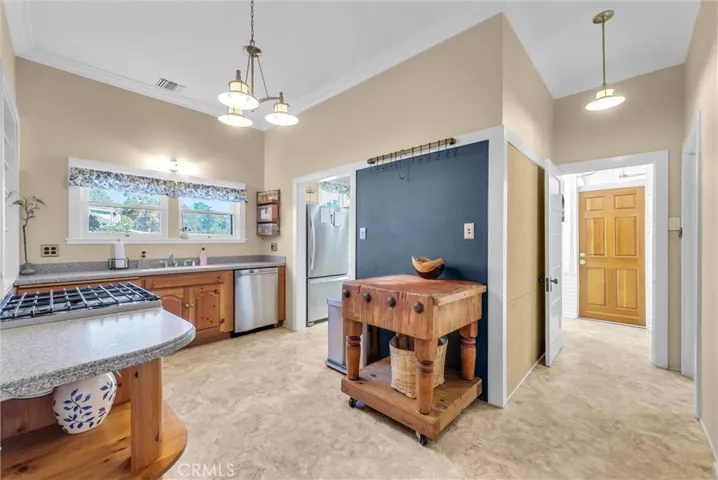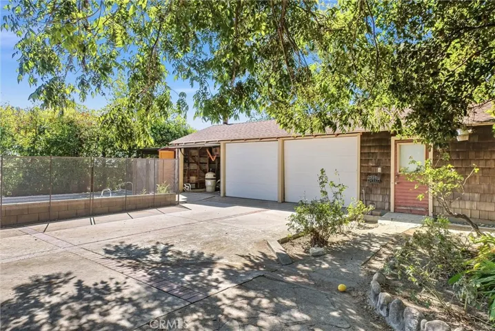 Modern upgrades include a fully updated electrical system, newer HVAC, and fresh paint throughout. The expansive 26,140 sq. ft. lot offers front and rear entrances, providing separate access ideal for an ADU or private guest quarters. Outdoor amenities feature a sparkling pool and spa, covered patio, rose garden, and mature fruit trees including orange, lemon, lime, grapefruit, avocado, fig, and pomegranate.
