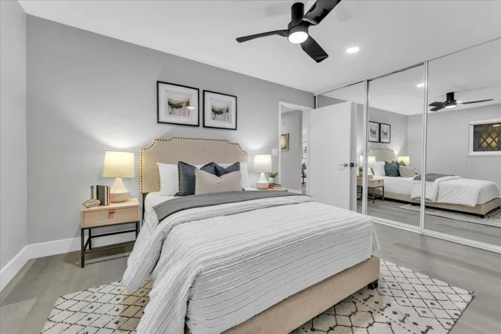 Come home to serenity in the Bayridge Heights neighborhood. This 1,228 sqft home offers a modern and inviting space, adding comfort to everyday living. Step into a freshly painted interior and new laminate flooring that brightens every part of the home. Enjoy the recently remodeled kitchen with ample cabinet space, and an upgraded hall vanity. The spacious living room flows into one of two balconies, overlooking beautiful skies and greenery. Within the home, youll also find new recessed lighting, remote controlled ceiling fans and updated bathrooms with refinished showers and new light fixtures. This unit includes an energy-efficient washer and dryer, a detached single-car garage with a total of two provided parking spaces, and access to a community pool. Nestled near excellent schools and major highways such as 280 and 92, youll experience tranquility and accessibility in this perfect home.