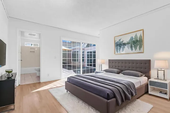 Five bedroom/3 full bath. Perfect for multi-generational living or growing families, this lovely home features two primary suites–one on the main level and another upstairs–plus two additional bedrooms and a flexible room (without a closet) that can serve as a bedroom, office, gym, playroom, or whatever suits your lifestyle. The modern kitchen offers granite counters, new stainless steel LG appliances, and rich cherry-stained cabinetry with pull-outs and soft-close drawers. A bright dining nook opens to the airy living room with vaulted ceiling, brick fireplace, and sliding doors to the backyard. The main-level suite is perfect for guests and opens to the back patio. The expansive upstairs suite (permitted loft conversion) enjoys a private balcony, dual closets (one big walk-in), and large bathroom w/shower. Enjoy fresh interior paint, dual-pane windows, A/C, 2023 water heater, and newer washer and dryer. Conveniently located across from Lowry Park near top Fremont schools, parks, trails, shopping, dining, and major commute routes. Photos have been virtually staged for marketing.