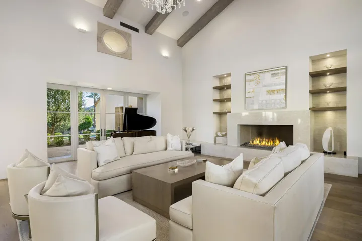 Absolutely Stunning Gordon Stein designed estate home, at the Tradition Golf Club. This home is on a spectacular South facing .65 acre lot that frames amazing mountain views, yet still offers serenity and privacy. There are four bedrooms plus an office, four baths plus powder room in a spacious 4,908 SF. Custom features include hardwood floors, beamed ceilings, crystal chandeliers, French doors, and a chic, airy kitchen with quartz counter tops and European style cabinetry. The luxurious primary retreat feels like a five-star spa with an opulent bath. There is also an office/media room, a detached Casita with a living room and two bedrooms. The outdoor entertaining area boasts a resort worthy pool, loggia with wood beamed ceilings and jaw dropping mountain views. This home has it all! Come home to Tradition!
