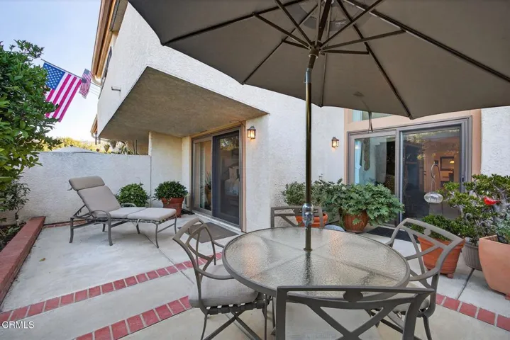 Beautifully Upgraded 3-Bedroom, 2-bath Town home in the desirable Shadow Mountain Tennis Club neighborhood. Nestled on a cul-de-sac in the scenic rolling hills of Newbury Park, this special 2-story home features a spacious primary bedroom suite conveniently located on the first floor and abundant closet space throughout. The lovely remodeled kitchen boasts premium finishes, including a Viking stainless steel stove & refrigerator, granite counter tops, built in dishwasher, custom cabinets with pull out drawers and a sunny breakfast nook to enjoy your morning coffee or tea! Step into the inviting living room with a cozy fireplace and enjoy seamless indoor-outdoor living with direct access to a private patio – perfect for entertaining, relaxing on your chase lounge chair, or enjoying fruit from your own Pomegranate or Cara Cara orange trees. There are two bedrooms and one full bath upstairs, one of the bedrooms has it’s own balcony with east facing views. This home also includes a separate dining room, lots of natural light, high ceilings, dual pane windows, ceiling fans, plantation shutters, and an attached 2-car garage with attic storage space along with ample guest parking close by. Residents enjoy access to fantastic community amenities, including tennis courts, a sparkling outdoor pool, a clubhouse and peaceful walking paths. Ideally located near hiking trails, shopping, restaurants, Ragamuffin Coffee Roasters, Trader Joe’s, Newbury Park High School, and more. This is California living at its best! These homes rarely come on the market, schedule your private showing today.