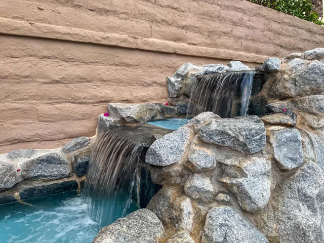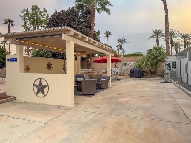Enjoy the soothing ambient sound of the multi-level waterfall just behind the lot, creating a peaceful and private outdoor retreat. This beautifully appointed motorcoach lot features an Alumawood pergola with a new polycarbonate roof skin and a two-year-old privacy wall wired for a TV, expanding your outdoor living space. The medium outdoor kitchen with new Weber BBQ, custom covers, tile accents, and a ceiling fan makes entertaining easy. Thoughtful details include beautiful landscaping and a custom-designed pet area with a French drain, perfect for pet owners. Well-shaded with warm evening lighting, the lot offers comfort day and night. Ideally located across from the satellite pool, hot tub, sauna, and laundry, it also benefits from extra guest parking and restrooms just steps away, making it perfect for hosting friends. Priced to sell as-is, this property delivers strong value in a premier luxury Class A motorcoach resort.Outdoor Resort Indio is a class A only RV resort.