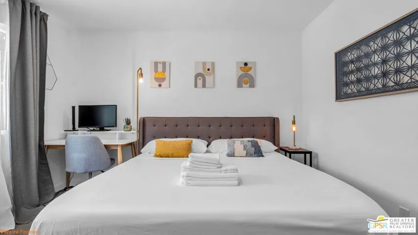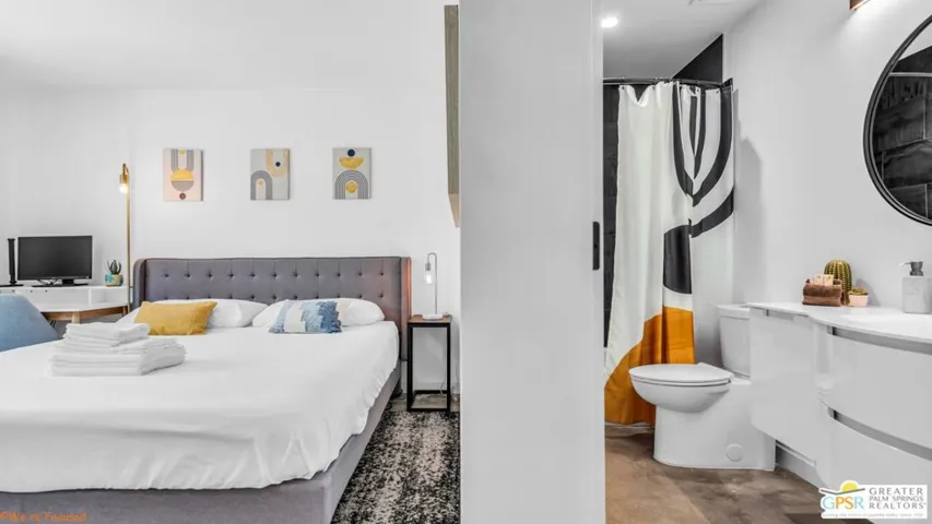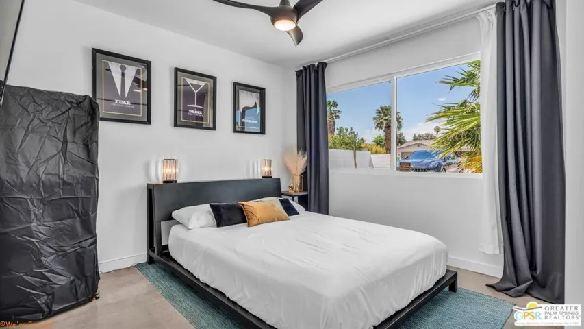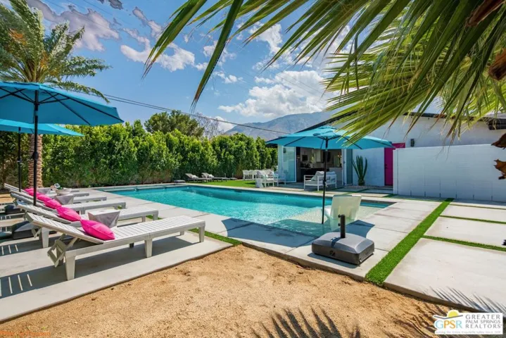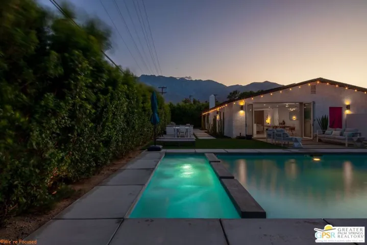 Experience the pinnacle of desert living in this 4-bedroom, 3.5-bath modern oasisa fully reimagined retreat where sophistication meets serenity. Set on a rare double-wide lot, this home is surrounded by over 100 mature ficus trees, creating a lush private sanctuary with unobstructed mountain views. Step outside to a resort-style escape featuring a saltwater pool and spa with baja shelf, a 10-person hot tub, and a firepit beside a turfed play area. Entertain with ease thanks to a built-in BBQ, outdoor dining area, and dedicated pool bath, all enhanced by $150K+ in professional hardscaping and landscaping, sleek block walls, and ample parking pads. Inside, natural light pours through expansive glass doors connecting the living area to the outdoors. The chef’s kitchen boasts quartz counters, stainless steel appliances, and a Carrara marble dining table centerpiece. Modern touches abound: polished concrete floors, floating vanities, and two primary suites with en-suite baths.Offered fully furnished and turnkey, this property has a proven short-term rental history with rave reviews, making it ideal as a luxury investment or personal retreat. Additional upgrades include a new HVAC system, leased solar, and a new Pentair saline system for effortless maintenance.Live or invest in one of Palm Springs’ most desirable neighborhoods where modern elegance, privacy, and income potential unite in one extraordinary property.