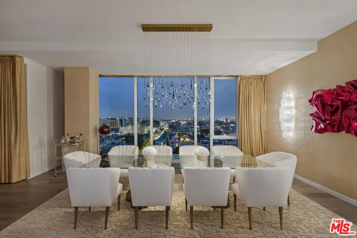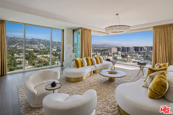 Set high on the 11th floor, this rare corner residence is not the penthouse yet lives with the presence of one, wrapped in glass and capturing spectacular views in every direction. A private dual elevator opens to an arrival foyer that sets the tone for more than 5,000 square feet of contemporary interiors suspended above the city and surrounded by floor-to-ceiling glass. Expansive living areas unfold with ease, framed by large wraparound balconies that capture sweeping vistas from downtown Los Angeles to the Pacific Design Center and Hollywood Hills. Light shifts throughout the day across the double living room, family space, and formal dining area, each flowing effortlessly into one another while maintaining a sense of scale and distinction. The kitchen is crafted as both a workspace and a retreat, with a large laundry, full bath, and flexible bonus room discreetly concealed behind. A richly composed powder room adds refinement, while ample storage is seamlessly integrated throughout. The primary suite is a sanctuary in its own right, commanding cinematic views that stretch across the city. Dual baths are individually appointed, including a soaking tub positioned before the skyline, accompanied by walk-in closets and a dedicated vanity area. Two additional guest suites, each with marble-clad baths and walk-in closets, also feature magical views both day and night. Life within this Four Seasons residence is matched by the service and environment beyond. With interiors by Martyn Lawrence Bullard, just fifty-nine homes share access to resort-style amenities: a pool framed by cabanas, a private restaurant with twenty-four-hour in-room dining, concierge and valet, and a dedicated property management team whose reach extends from safeguarding the residence while away to orchestrating a stocked kitchen or private jet on return. Set at the nexus of West Hollywood and Beverly Hills, moments from celebrated dining, shopping, and nightlife, it is a home that carries the rare equilibrium of architectural presence, five-star service, and absolute discretion.