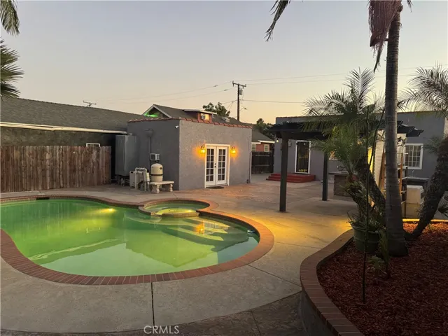 Charming classic home with POOL & JACUZZI ! Located on a quiet Cul-de-sac, fully fenced front yard and enclosed brick wall in back yard for privacy, with a detached garage that can easily be used as an ADU or pool house! Plenty of parking space, with side access and roll out gate. Conveniently located near all shopping amenities, and family fun centers like Knots Berry farm, Disney Land, etc. Just a couple minutes to freeway. Home boasts Spanish style Architectual design and arches, spacious bedrooms and layout. Living room and separate dinning area, with an abundance of natural light. Kitchen is open with granite countertops, plenty of cabinet space. Back yard is perfect for entertaining, with Gazebo and Barbecue island, mature palm trees. Lots of fruit trees and a kid and dog park next door.