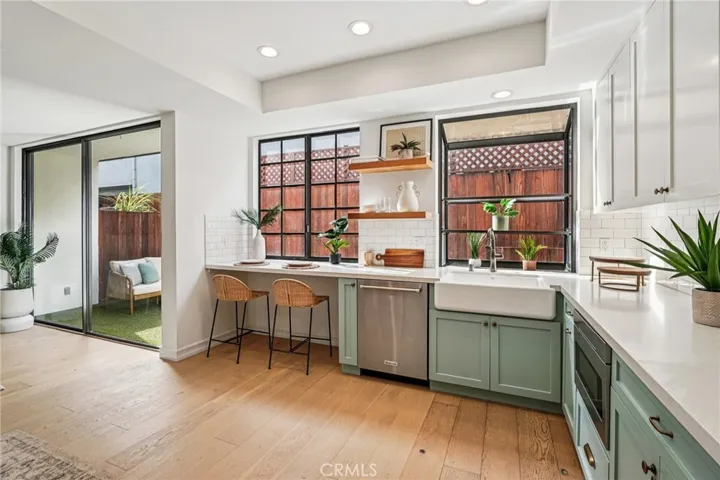 BACK ON THE MARKET! IF YOU MISSED IT THE FIRST TIME, DON’T MISS YOUR SECOND CHANCE! Beautifully remodeled 3-bedroom, 2.5-bath townhome situated on a tree lined street in one of Santa Monica’s most coveted neighborhoods. Thoughtfully redesigned, this home features modern finishes, open living spaces, and abundant natural light enhanced by skylights in the hallway and bathrooms. The gourmet kitchen seamlessly connects to the dining and living areas, creating an inviting atmosphere for both entertaining and everyday living. From the dining area, step out to a private outdoor patio that offers additional space for lounging or al fresco dining. A convenient powder room is also located on the main level. The spacious primary suite is a true retreat with a cozy fireplace and a luxurious spa-like bath. Two additional bedrooms share an updated bath with designer finishes, providing comfort and flexibility for family, guests, or a home office. A private 2-car garage with direct access adds convenience, while the gated complex ensures privacy and security. Perfectly positioned near Montana Avenue’s shops and cafés, the beach, and the highly regarded Roosevelt Elementary School, this home captures the essence of premier coastal living in Santa Monica.