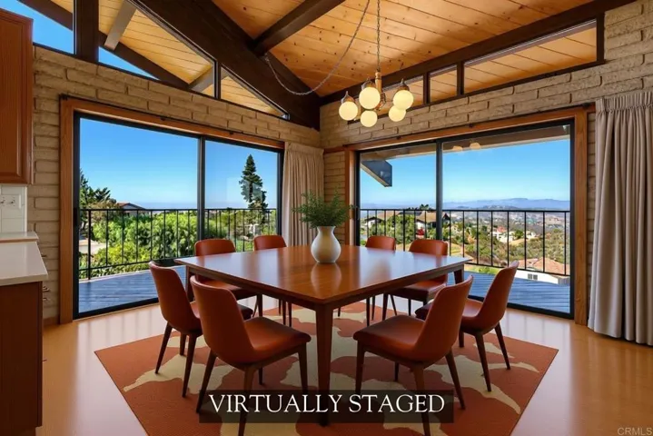 Live in a Master Craftsman’s Dream Home with Sweeping Ocean Views! Looking for a one-of-a-kind home with timeless craftsmanship, incredible views, & space for all your passions? Welcome home to this Vista “Propertunity” — a rare blend of character & functionality that’s nearly impossible to find in San Diego County today. Custom-designed & built by its original owner — a true master craftsman — this residence was created with care, comfort, & connection in mind. Set high on a scenic hillside, it offers breathtaking views stretching from the mountains to Catalina Island, in a peaceful neighborhood known for its ideal year-round climate & sense of community. The ocean views & sunsets are outstanding! With its strong architectural lines, warm natural materials, & thoughtful design, this home offers a Frank Lloyd Wright–inspired look — a timeless aesthetic that blends beautifully with its surroundings. The home’s stone fireplaces were built using rock gathered from the land it sits on — a stunning tribute to craftsmanship & connection to place. Built lovingly to last, this solidly constructed residence offers good sturdy bones & a blank canvas ready for your personal vision & modern updates. The design showcases vaulted wood ceilings, natural finishes, & open, light-filled spaces that flow onto a massive view deck — perfect for relaxing, dining outdoors, or hosting gatherings. Currently configured with 4 spacious bedrooms, the flexible floor plan offers options for up to 6 bedrooms within the home’s original design. The expansive lower-level room can easily be divided into 2 rooms, & the primary suite’s windowed walk-in closet — originally designed as a bedroom — can be reconverted if desired. The garage & workshop spaces are unmatched. The double RV garage features 2 oversized roll-up doors approximately 11 feet tall, interior ceilings even higher, & about 40 feet of depth — ideal for RVs, boats, or multiple vehicles — plus a ¾ bath & abundant workshop space filled with natural light. A detached upper 2-car garage with vaulted wood ceilings provides additional parking or hobby or office space, with potential for conversion into a guest suite with 7th bedroom, studio, or ADU (subject to permits). No HOA & no Mello-Roos! Outside, enjoy fruit-bearing trees including oranges, lemon, lime, grapefruit, & even macadamia nuts. A circular paver driveway, manicured landscaping, & owned solar panels make this property as practical as it is beautiful. Located near Vista’s revitalized downtown, local wineries, farm stands, the Moonlight Amphitheatre, shopping, & dining & only 20 minutes to the beach this home offers a rare combination of privacy, potential, & convenience. Termite, septic, & home inspections are already completed & available for review — giving you peace of mind as you envision your life in this beautiful one-of-a-kind home.