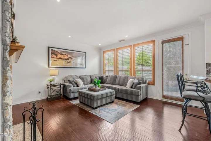 Welcome to this beautifully appointed 4-bedroom, 3.5-bathroom single-family home located in the heart of Newbury Park. Step through the front doors into a dramatic double-height foyer that flows seamlessly into a light-filled, open-concept living and dining area, perfect for both everyday living and sophisticated entertaining. Custom tile flooring and a grand chandelier set the tone for refined elegance. The formal living room features a cozy fireplace, while the expansive dining area, highlighted by a centered chandelier, provides ample space for memorable gatherings. The chef’s kitchen is a dream, featuring abundant counter space and cabinetry, a center island, recessed lighting, built-in oven, microwave, and dishwasher. Adjacent to the kitchen, the inviting eat-in area perfect for your morning coffee. The warm and welcoming family room is complete with a stunning stone fireplace and lots of natural light. Also on the main level is a versatile bonus room, ideal as a home theater with surround system, home office, or guest quarters, offering flexibility to suit your lifestyle. Upstairs, the plush, carpeted staircase is accented with custom wrought iron railings, guiding you to a spacious primary suite filled with natural light. Enjoy recessed lighting, a generous walk-in closet, and a luxurious ensuite bath featuring dual vanities, a large soaking tub, and a walk-in shower. Three additional well-sized bedrooms and a convenient upstairs laundry room complete the upper floor. Step outside to your private backyard oasis, perfect for year-round entertaining. Enjoy a sparkling pool, relaxing spa, and lush landscaping with waterfall that offers beauty and tranquility in equal measure. Conveniently located near shopping centers, scenic hiking trails, parks, top-rated schools, and more, this home combines comfort, style, and an unbeatable location.