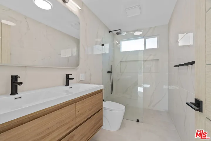 Experience luxury coastal living in this newly renovated 3-bed, 2-bath, top floor unit on the quiet Paloma Ave walk street – just seconds from Venice Beach. This architecturally crafted home combines high-end design, functionality, and smart-home technology. Enjoy open-concept living with floor-to-ceiling windows and a 14-ft folding glass wall that connects the living space to a private balcony – perfect for indoor/outdoor dining while enjoying the ocean breeze. The chef’s kitchen features Calcutta waterfall countertops, European cabinetry, stainless Samsung appliances, and a wine fridge. The primary suite includes dual closets, a Juliet balcony, and a spa-inspired bath with Italian marble, rainfall shower, and built in Alexa-operated speaker system. Unwind on the 400 sq. ft. shared rooftop deck with lounge seating, fire pit, and BBQ. Smart-home features include voice/app-controlled lighting, NEST thermostat for central heat and AC, Ring video doorbell, and keypad entry. Tucked on a quiet walk street just steps from Abbot Kinney, Rose Ave, and the Venice Boardwalk, this penthouse delivers privacy, sophistication, and pure California beach living. The unit also comes with two tandem parking spots – one in the garage and one parked behind.