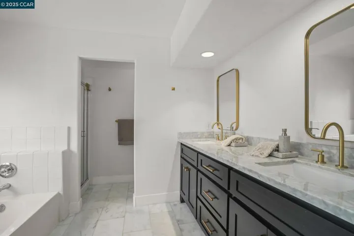 Now offered at a great new price of $1,169,950! Tucked away on a private lane, this beautifully renovated Concord home sits on a spacious 0.29-acre lot offering both privacy and style. Inside, you’ll find a thoughtfully designed interior featuring extensive upgrades throughout. The main living areas boast new flooring, while the bathrooms showcase elegant tile work and the primary suite is enhanced with polished marble finishes. The kitchen, living room, and bathrooms are outfitted with custom cabinetry and quartz countertops, including a farmhouse sink and upgraded toilets. High-end appliances elevate the space, including a Bosch refrigerator and dishwasher, a Café range, and a new hood and microwave. Additional enhancements include a refinished staircase, updated ceiling fans and light fixtures, a refreshed fireplace with a new mantel and tile surround, and a glossy white ceramic tile backsplash. The home’s systems and exterior have also been improved with a brand-new HVAC system installed in 2024 and new turf along the side yard, ensuring year-round comfort and inviting outdoor living. With its modern updates, spacious lot, and serene location, this home is a true gem — one that must be seen to be fully appreciated.