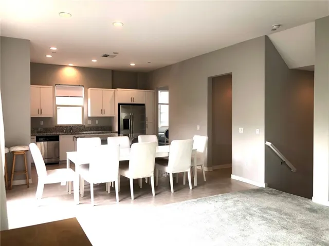 Just deduced $400 for quick Lease. Brand-new like home! Landlords only lived in the home for a couple days since 2017. Experience contemporary luxury in this end-unit, tri-level condo, ideally located in the sought-after Upland Central Live/Work community, easy access to Montclair Metrolink, Claremont Colleges, and major shopping centers like Costco and Montclair Mall. This spacious 4-bedroom, 3.5-bathroom residence has 1,976 square feet of meticulously designed living space perfect for families, professionals, or students seeking proximity to the prestigious Claremont Colleges. The first floor features a versatile live/work space or guest suite with a full bathroom 12 feet high ceiling, a private patio, and direct access to the 2-car garage with EV charger, which includes a tankless water heater. On the second level, enjoy an open-concept living and dining area with a balcony, a chef’s kitchen featuring quartz countertops, stainless steel appliances, pull-out shelving in cabinets, a walk-in pantry. The third floor offers three bedrooms, including a luxurious primary suite with high ceilings, a walk-in closet, a sliding barn door to the ensuite bath, dual sinks, a granite countertop, and a spa-like shower. A guest bathroom and separate laundry room with a washer and dryer complete this level. Included furniture: new refrigerator, new washer & dryer, dining table & chairs, sofa, new mattresses, other items on the photos. Residents enjoy premium HOA amenities including: a gated pool for relaxation and recreation, fire pit, BBQ area, and pet trail.