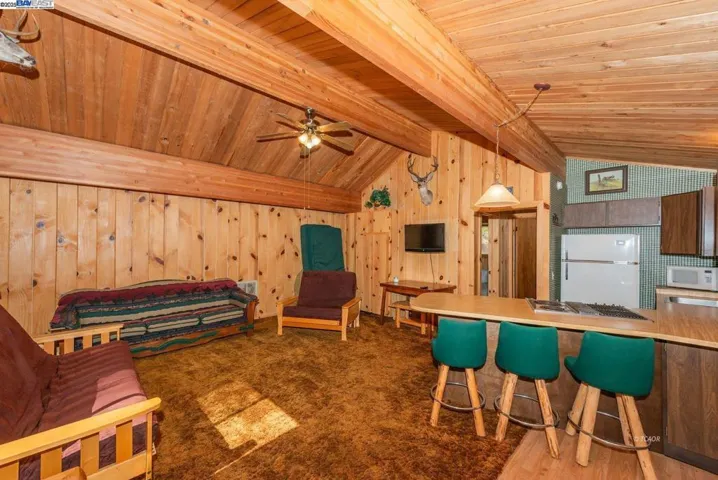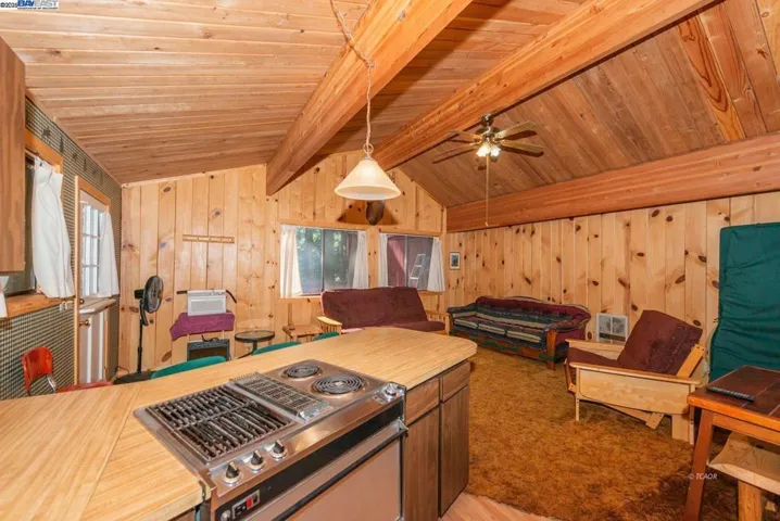 Nestled at the foot of the stunning Trinity Alps Wilderness, this charming 980 sq. ft. cabin captures the essence of mountain living and lakeside relaxation. Featuring beautiful T & G hemlock wood and vaulted ceilings, this inviting retreat offers a warm, rustic atmosphere throughout. The main level features a cozy one-bedroom, one-bath layout, with the kitchen conveniently centered in the heart of the home-perfect for easy gatherings, great natural light that enhances the cabin’s serene charm. Downstairs, a walkout basement provides additional sleeping space with two large beds, ideal for guests or family getaways. Step outside to enjoy the expansive wraparound deck-perfect for relaxing, entertaining, or taking in the forested scenery. Built with quality in mind, the cabin features redwood board-and-batten siding, a durable metal roof, and ample decking. Sitting on .43 of an acre, there’s plenty of room for boat or RV parking-and with Trinity Lake right across the street, your next adventure is always within reach! Whether you love boating, fishing, backpacking, hiking, or camping this property is your gateway to the great outdoors. Enjoy peace, privacy & endless recreation.