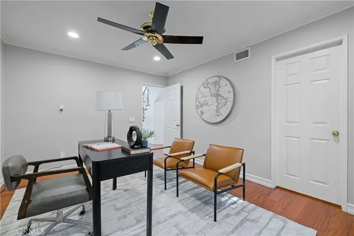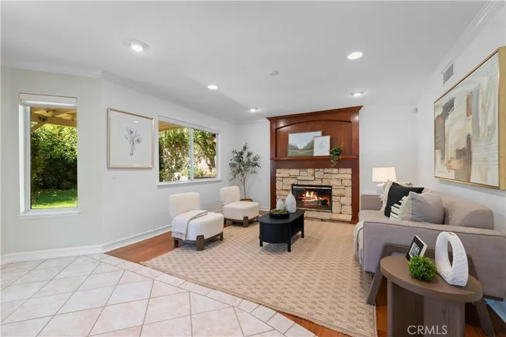 Located in the desirable Bouquet Canyon Estates, this beautifully maintained 4 bedroom, 3 bath home offers 2,403 square feet of stunning living space on a private corner lot in a quiet cul-de-sac. Step inside to soaring ceilings, luxury flooring, plantation shutters throughout, and a gorgeous custom wrought-iron staircase that sets the tone for the open and inviting floor plan. The spacious living room features grand arched windows that fill the space with natural light and flow seamlessly into the formal dining room, ideal for gatherings and entertaining. The family room, highlighted by a cozy fireplace with an exquisite mantel, opens to a chef’s kitchen complete with a center island, granite countertops, custom backsplash, top of the line stainless steel appliances, and ample cabinetry. Elegant French doors lead to an entertainer’s backyard, featuring a large covered patio with lighting and ceiling fan, a beautiful stone built-in BBQ with burner and mini fridge, and lush landscaping offering privacy and mature fruit trees – fig, persimmon, pomegranate, lemon, and grapefruit. Make every night pizza night with your own outdoor pizza oven, perfect for hosting family and friends! A downstairs bedroom (currently used as an office) and full bath provide flexibility and convenience. Upstairs the spacious primary suite includes a comfortable sitting area, a cedar-lined walk-in closet, and a luxurious en-suite bath with dual sinks, frameless glass walk-in shower, and relaxing soaking tub. Bedrooms two and three feature high ceilings, arched windows with shutters, ceiling fans, and generous closets, sharing a hall bath with dual sinks. A separate laundry room leads to a two car garage with built-in storage cabinets. With NO HOA and NO Mello Roos, this rare gem combines style, comfort, and an ideal location -truly a must see!