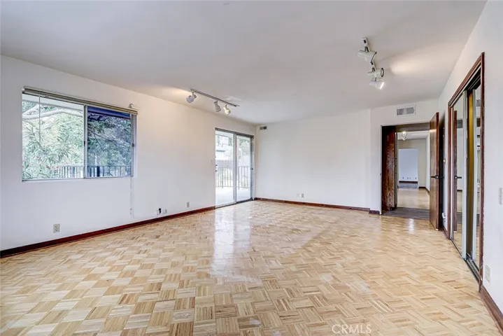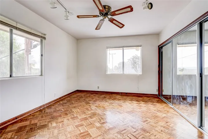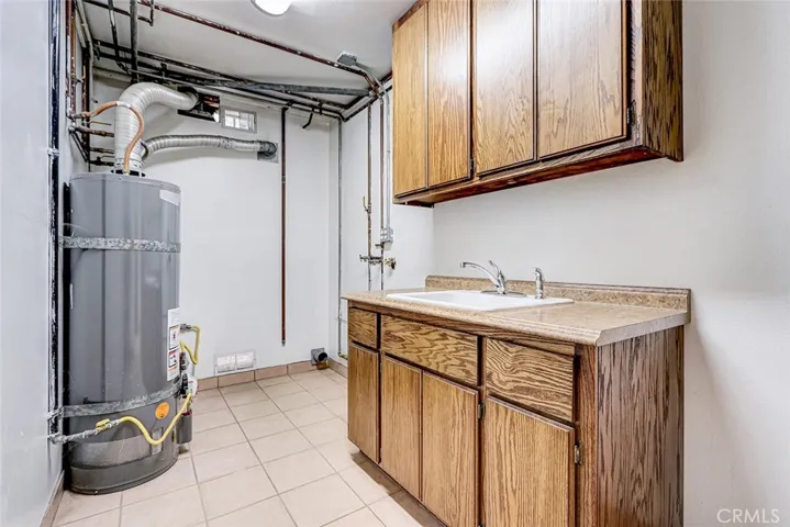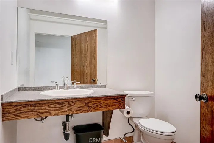 Directly below, the commercial space includes a full kitchen, laundry area, two bathrooms, and three oversized rooms, perfect for offices, studios, exam rooms, or a variety of professional uses.