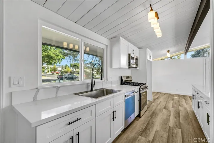 Beautifully Remodeled Mid-Century Modern Home in La Habra! This stunning 3-bedroom, 2-bath home has been completely remodeled inside and out. Enjoy a brand-new driveway with generous parking space for multiple vehicles, plus a spacious backyard with fresh concrete and a sparkling in-ground pool—a perfect setting for barbecues, celebrations, or quiet evenings by the pool. The pool was recently replastered with pebble finish and new filter, new pump, and new lights were installed. The bright, open kitchen features elegant quartz countertops, a new island overlooking the family room, all-new stainless steel appliances including gas stove, microwave, and dishwasher, plus a new sink and fixtures. Throughout the home, you’ll find new flooring, fresh interior and exterior paint, recessed lighting, and double-pane windows for energy efficiency and comfort. Both bathrooms have been beautifully upgraded with new vanities, quartz countertops, new toilets, shower doors, mirrors, and modern lighting. The detached two-car garage includes a new motor and door. Potential RV parking at side of home. Located on a quiet street in the City of La Habra, close to restaurants, shopping, banks, and schools. This move-in-ready Mid-Century Modern home blends timeless style with today’s upgrades—an ideal home for both relaxing and entertaining!