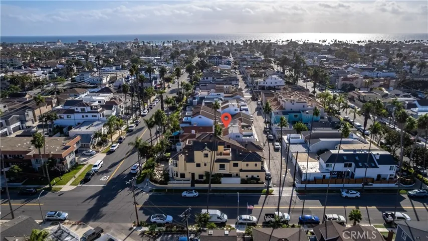 Just five blocks from the sand and a couple blocks from the heart of downtown, this exceptional Huntington Beach home embodies the essence of modern coastal living. Spanning approximately 2,700 square feet, it combines refined design, custom craftsmanship, and effortless livability in one beautifully curated package. Inside, natural light and elegant upgrades define the open-concept layout. The main level features a welcoming living room with a cozy fireplace and access to a private side yard, a half bath, and a convenient laundry room with sink that connects directly to the two-car garage. The chef-inspired kitchen is a true centerpiece, showcasing custom ceiling with wood beams, shaker cabinets, a spacious center island with bar seating, a built-in breakfast nook, and premium stainless steel appliances. The space flows easily into the formal dining area and out to a private front patio complete with a firepit, perfect for relaxed evenings and ocean breezes complete with a gas line to easily add a built-in BBQ center. Upstairs, the primary suite offers a tranquil escape with a double-sided fireplace, a generous walk-in closet, balcony, and a spa-caliber bathroom with dual vanities, a soaking tub, and a walk-in shower. Two additional bedrooms and bathrooms are thoughtfully positioned nearby, while a bonus room with soaring ceilings and a fireplace creates the perfect spot for a media room, lounge, or home office. A versatile loft on the upper level opens to the rooftop deck, where panoramic views set the stage for unforgettable entertaining or quiet sunset moments. With three fireplaces, stylish hard-surface flooring, custom paint, new tankless water heater, outdoor shower on side patio and designer touches throughout, this home exudes warmth and sophistication. Blending the ease of indoor-outdoor living with the unbeatable proximity to the ocean, dog beach, and downtown’s premier shopping and dining, it represents the best of Huntington Beach coastal luxury all in an award winning school district!