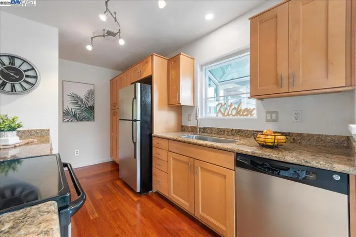 Are you a homeowner looking for turnkey luxury or a savvy investor seeking strong rental potential? Great value for Pleasanton! Welcome to this beautifully upgraded 2-bedroom, 2-bath condo in the highly sought-after Canyon Meadows community. This upper-level home offers a perfect blend of comfort, privacy, and modern style. Enjoy stunning views from the two balconies as well as from the living room, dining area, and both bedrooms — all framed by newer dual-pane windows (2021) that boost energy efficiency. Soaring vaulted ceilings and abundant natural light give the home an airy, open feel. The custom kitchen showcases natural maple cabinetry with pull-out drawers, modern appliances, and a sleek hands-free faucet. Primary suite includes a walk-in closet and a highly-upgraded spa bathroom. Second bath is completely updated and includes modern glass vanity and mosaic tile trim. Recent improvements include a new HVAC system (2021), plush carpeting, fresh paint, new window coverings, and updated lighting and hardware throughout. Enjoy resort-style living with close access to tennis, basketball, and volleyball courts, pool and spa, clubhouse, and fitness center. Prime location near BART, 580/680, top-rated Pleasanton schools, shopping, and dining. Move in and pamper yourself!