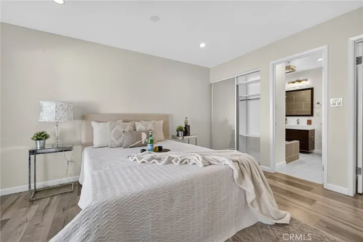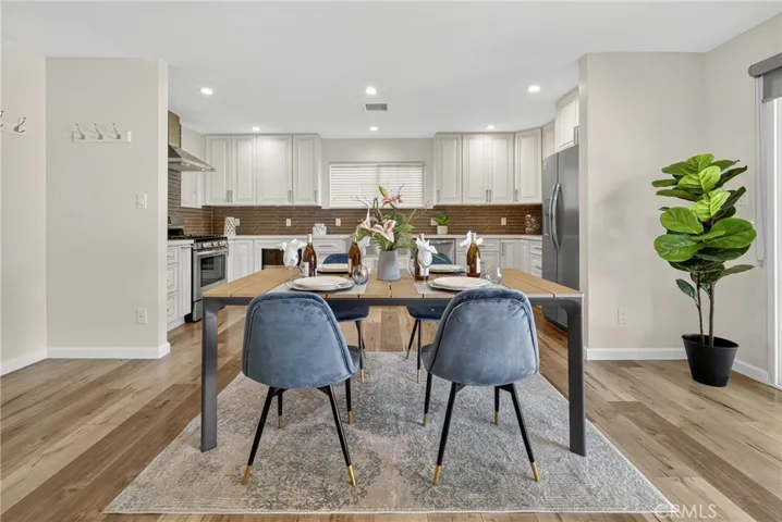 Tucked within a quiet West Hills neighborhood, this picture-perfect West Hills home blends midcentury appeal with modern sophistication. Framed by a classic picket fence, mature trees, and lush landscaping, the home’s inviting curb appeal leads to a covered front porch and an open, sun-filled floorplan designed for comfort and connection. Inside, wide-plank wood flooring flows through the main living spaces, complemented by recessed lighting and dual-pane windows and doors that enhance natural light throughout. The spacious living room centers around a sleek, floor-to-ceiling tiled fireplace, lending a warm, contemporary touch. The spacious kitchen delights with white cabinetry, quartz countertops, stainless-steel appliances, a farmhouse sink, and a modern glass tile backsplash—all part of the seamless great room for effortless entertaining. Sliding glass doors reveal a private backyard oasis featuring an inviting pool surrounded by a wraparound concrete patio, a covered porch area perfect for shaded lounging or outdoor dining, and a low-maintenance faux grass lawn. The primary suite offers serene pool views through a second sliding glass door that also offers direct backyard access, and a beautifully appointed full en-suite bathroom with a dual-sink vanity. Three additional bedrooms share a stylish full hall bath with modern finishes. A two-car garage accessed from the rear alley provides added convenience. Conveniently located near top-rated local parks, shopping, and dining destinations at Fallbrook Center and The Village at Topanga, with easy access to major thoroughfares including Topanga Canyon Blvd and Sherman Way.