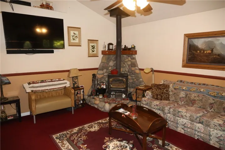 This 3 bedroom 2 bath home is conveniently located for easy access to hiking, biking, and outdoor activities. This mountain retreat has been well taken care of with a large kitchen connected to a living room and dining area. The master bedroom has a walk-in closet and a large double sink vanity. French doors from the master bedroom open up to a large Trex deck that spans the entire width of the home. Each room has its own heater and thermostat. The living room has a wood burning stove perfect for those weekend getaways. Convenient indoor laundry just off of the kitchen and a nice fenced front porch to enjoy the mountain air. This beautiful home is located just 10-15 minutes from downtown Big Bear. Most of the furniture is included with the property. Don’t miss this one.
