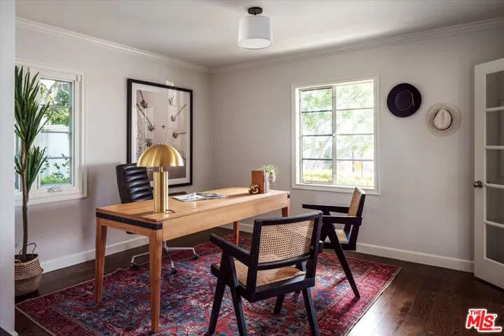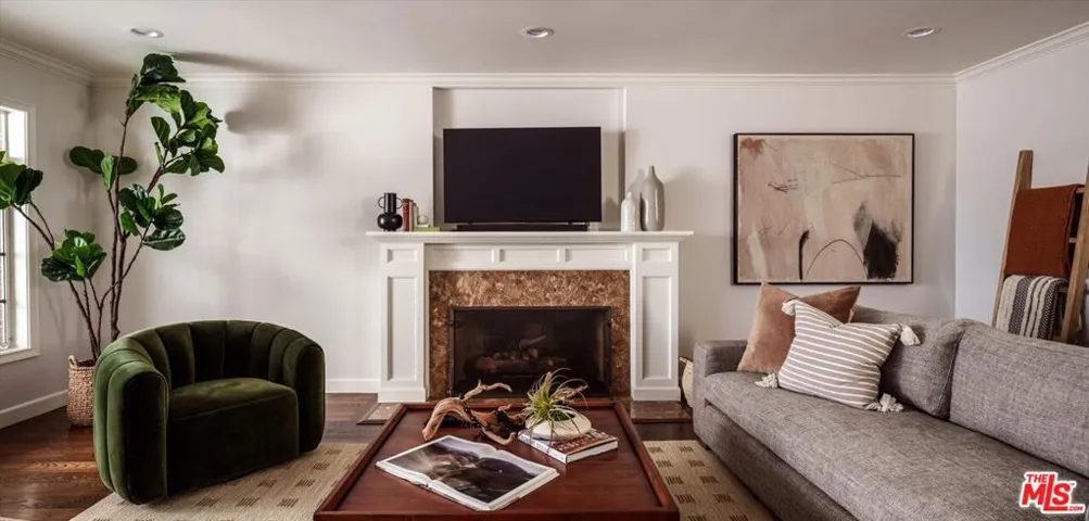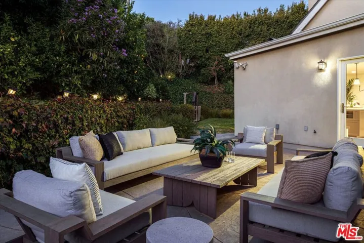 Welcome to 1100 Las Pulgas Place, a gorgeous traditional nestled at the entrance of a cul-de-sac in one of the most desirable neighborhoods. Situated on a private corner lot, this classic home offers a sensible floor plan with easy indoor/outdoor access to enjoy the verdant park-like grounds. Step inside the formal entryway and you’ll find yourself in a large living room filled with natural light, rich hardwood floors and a brick fireplace. The spacious kitchen has an island with enough room for seating, a dining area and is connected to a den that opens up to the backyard and two patios, creating a space that is perfect for entertaining or informal gatherings. On the lower level, at the front of the house, there is also a roomy office which makes working from home an enticing option. Upstairs, perfectly laid out, you’ll find the primary bedroom with ensuite bath and two walk-in closets as well as two additional bedrooms. In the back of the house, a flat grassy lawn extends out to a terraced slope with mature landscaping, citrus trees and a secret path. There is also a two-car garage with direct access to the house, which has been fully remediated and passed post-remediation testing. This is truly a timeless home that blends functionality, comfort and style – one that you won’t want to miss.