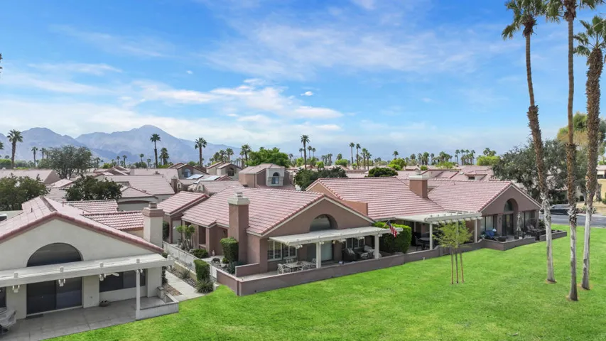 Wonderful location right on the 15th tee box inside the Oasis Country Club. This 3BR/2BA single story attached end unit condo offers open living space with vaulted ceilings. plantation shutters, fireplace and a large patio with spectacular views. Master Bedroom is spacious, has s a walk in closet and private patio. The Oasis CC offers many amenities, golf, practice area for hitting golf balls, tennis, pickle ball, 18 hole putting course, 18 pools and spas, fitness room & a doggie park. The clubhouse offers two restaurants, one is casual dining in The Grille and the other is the larger dining room and lounge and banquet rooms. The Oasis CC is centrally located in Palm Desert and close to world class amenities and activities.
