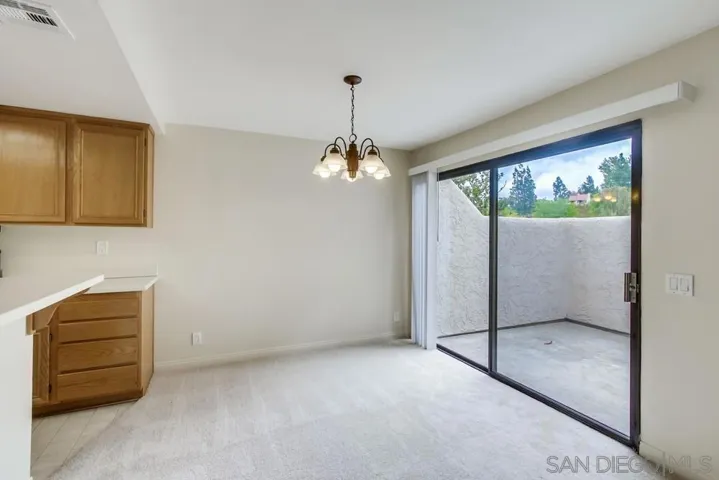 Rarely available first floor (no steps, no stairs!) two bedroom, two bath unit with high ceilings and a private patio! Beautifully refreshed with brand new carpet and freshly painted interior. The open floor plan features a spacious living room with a charming fireplace, a bright kitchen with solid surface countertops, abundant storage, and full size indoor laundry. The primary bedroom is en-suite with a large walk in closet, while the secondary bedroom offers two closets for extra storage. The private patio is perfect for relaxing or entertaining. Bernardo Pines is a beautiful community surrounded by mature trees and lush park-like landscaping. Residents enjoy resort style amenities including two pools, spas, a fitness center, tennis court, and play areas. HOA covers water, trash, and sewer. Conveniently located near hiking and biking trails, fantastic restaurants, shopping, and the Rancho Bernardo Library with easy freeway access. Located within the award winning Poway Unified School District. This is the perfect place to call home. Rarely available first floor two bedroom, two bath unit with high ceilings and a private patio! Beautifully updated with brand new carpet and freshly painted interior. The open floor plan features a spacious living room with a charming fireplace, a bright kitchen with solid surface countertops, abundant storage, and full size indoor laundry. The primary bedroom is en-suite with a large walk in closet, while the secondary bedroom offers two closets for extra storage. The private patio is perfect for relaxing or entertaining. Bernardo Pines is a beautiful community surrounded by mature trees and lush park-like landscaping. Residents enjoy resort style amenities including two pools, spas, a fitness center, tennis court, and play areas. HOA covers water, trash, and sewer. Conveniently located near hiking and biking trails, fantastic restaurants, shopping, and the Rancho Bernardo Library with easy freeway access. Located within the award winning Poway Unified School District. This is the perfect place to call home.
