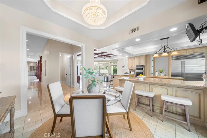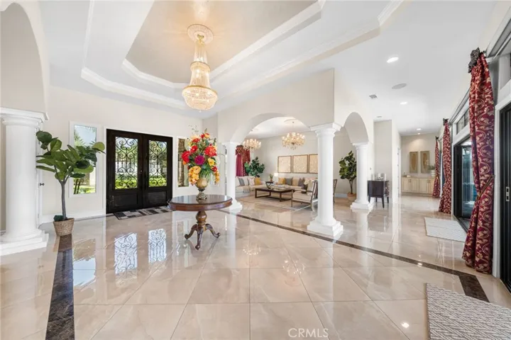 Welcome to this stunning 4 bedroom, 4 bath residence nestled in the highly sought after San Antonio Heights neighborhood of Upland. Set on a generous .44-acre lot, this home captures mountain views and features a circular driveway with abundant parking, 26-ft RV parking and two 220V electric car outlets for convenience and versatility. As you make your way inside through the impressive wrought-iron double doors, a welcoming foyer opens to elegant pillars, 14ft high ceilings and an abundance of natural light that floods the formal living area through arched windows and floor to ceiling doors. Also stunning are the chandeliers throughout, polished tile flooring and new bifold doors that create seamless indoor-outdoor living. A formal dining room on the opposite side provides an ideal space for gatherings and entertaining. The gourmet kitchen showcases stainless steel appliances, a breakfast nook and an adjoining living area featuring a fireplace, floor-to-ceiling backyard views and a built-in bar—perfect for relaxed family moments. The primary suite offers a luxurious retreat with an oversized walk-in closet, a spa-inspired bath with a jetted soaking tub, standing shower and separate vanities and refined finishes. Additional highlights include a steam spa bathroom, built-in surround sound, and a home security system for modern comfort and peace of mind. The expansive backyard is designed for entertaining, complete with a built-in BBQ, outdoor spa and ample space for recreation. Ideally positioned in the scenic foothills of Upland, this home blends comfort, functionality and sophistication—just minutes from shopping, dining, and top-rated schools. A home that radiates pride of ownership, don’t let this opportunity pass you by!