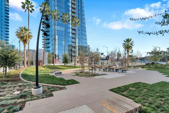 One-of-a-Kind Remodeled Condo in the Heart of Downtown San Jose! Completely reimagined and truly unique, this 1-bedroom, 1-bathroom condo at City Heights shines with designer-quality finishes. Remodeled in 2021 with over $80,000 in upgrades, this home offers modern elegance at every turn. The brand-new kitchen features sleek quartz countertops, marbled backsplash, custom cabinetry, and all-new stainless steel appliances. The bathroom boasts a walnut vanity, slate tile flooring, and honeycomb tile shower surround. No expense was spared, with wide-plank oak flooring, plush bedroom carpet, custom lighting, honeycomb shades, new baseboards, and fresh designer paint. A standout feature is the expansive balcony spanning the width of the home, offering outdoor space and a private storage closet. HOA covers water, garbage, high-speed internet, and luxury amenities including a gym, conference room, mailroom, stylish lobby, and onsite management. Deeded garage parking adds convenience. Located steps from San Pedro Square, Pellier Park, restaurants, shops, and entertainment, with easy access to Highways 280, 101, 87, SJC, Caltrain, this home offers the perfect blend of luxury, convenience, and vibrant city living. Don’t miss this rare opportunity to own a beautifully upgraded condo!