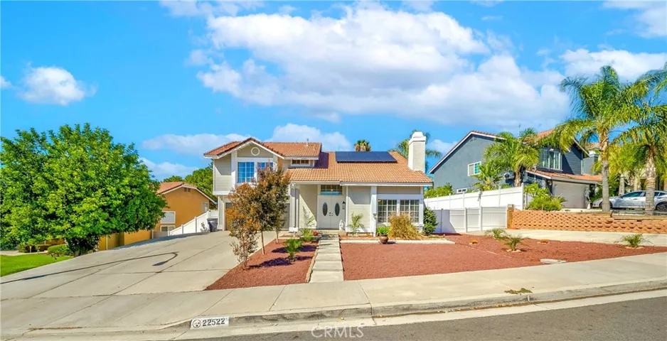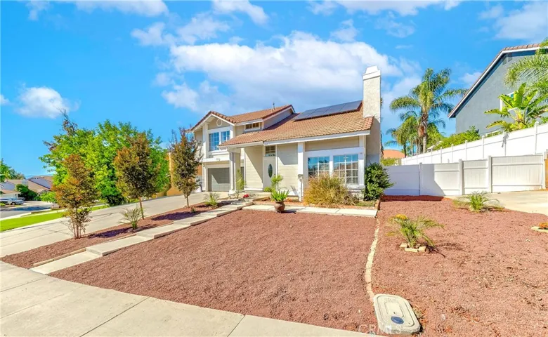 Welcome to this beautiful 1,932 sqft two-story home in Moreno Valley! featuring 4 bedrooms and 2.5 bathrooms. Surrounded by scenic hills and a stunning mountain backdrop, this residence welcomes you with brand new double doors, warm wide-plank flooring, warm-tone tile, and newer carpet throughout the bedrooms, all complemented by neutral tones. The second floor features an oversized primary bedroom with a his & hers bathroom sink, walk-in closet and beautiful plank flooring, plus three additional bedrooms and a full hallway bath for convenience. The main level offers a spacious living area with an inviting fireplace, a half bathroom, and a beautiful kitchen with an additional family room, perfect for seamless entertaining. Enjoy an expansive backyard ideal for gatherings, complete with a vinyl fence all around for added privacy and a full covered patio. It is the perfect canvas for your imagination! Plant fruit trees, for a vibrant garden or build a pool , or an ADU, etc. Iit is Conveniently Located just minutes from top-rated schools, shopping centers, hiking trails, and the General Old Golf Course, with quick access to the 60fwy and 215fwy freeways. This is a great house for growing families, at an affordable price! The house also includes SOLAR PANELS, great for saving all year round on that A/C and electronics! for a low monthly payment of $140. Call to make your appointment to view it today!