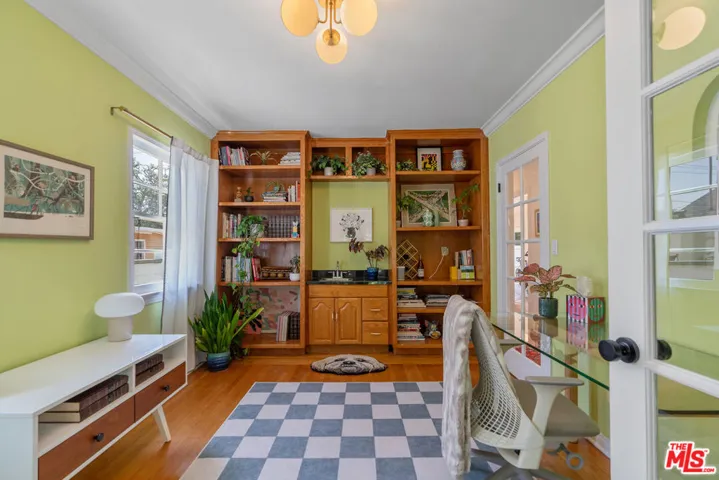 Stunning 1941 Traditional with views of the towering San Gabriel Mountains, in the much-coveted President Streets neighborhood near the Eaton Nature Preserve. Featuring a main house consisting of 4 bedrooms and 3 bathrooms, plus a detached guest house (measured at 592 square feet), which includes a full bathroom, a second laundry hookup, storage area, and a soundproof music room. Past the lush and drought-tolerant greenery and the meandering stone walkways, you will find the inviting living room, anchored by a fireplace, with an oversized picture window that brings the outdoors in. Warm original oak floors lead you into the formal dining room via a large archway, where you can enjoy your meals with views out to the garden, where details like the home’s original porthole window and curvature of the front porch remind you of a time when all the details of a home were carefully crafted and thought out. The modernized kitchen immediately draws your eye to the quaint breakfast nook, with bay windows and original wainscoting. Other unique details include beamed ceilings, fun saloon doors leading to the laundry room, and a scalloped valance above the sink. Light-filled and airy, with glass-front cabinets, quartz countertops, and brass hardware- the kitchen is a seamless blend of classic and modern. French doors lead you to your own Mad Men-style office, with rich wood built-ins, a sink for a wet bar, and an arched transom window. Bathed in light with an oversized skylight and its own en-suite bath is one of the bedrooms. Off the long hallway, you will find a full bathroom featuring classic black-and-white tile and dual windows. Another large bedroom, with a door leading to the beautifully lit backyard, and the primary suite make up the rest of the main house. The primary suite is 560 square feet of sheer delight, featuring a vaulted ceiling, a skylight, two closets, bay windows that include French doors, and a stunning bathroom with an oversized shower and built-in bench and shelf, dual sinks, and a closet with new custom-built storage shelving and pocket door. Completely gut-renovated in 2024, with bold and brilliant porcelain olive green tile from Wow Design EU and Huntington White Terrazzo floors. Step outside and stare in awe at the grandeur of the towering mountains from your hammock while eating an orange from your abundantly producing tree. The flagstone path leads you to the recently gut-renovated guest house, and it is absolutely incredible. Telescoping Fleetwood sliding glass doors lead you to a foyer with oak built-ins and a sink with a refrigerator. The main area showcases vaulted ceilings, a skylight, custom casework shelving with integrated lighting, and hardwired internet. Polished concrete throughout, and new Milgard windows, plus a well-sized bathroom with oversized shower, vertical picture window, floating vanity, and dazzling olive porcelain tile work. Need a space to make some noise? This guesthouse also features an interior room with soundproofing materials between double drywall and mounted picture lights to showcase your favorite art pieces. A storage area with laundry hookups and a utility sink finishes off the space. The property also features an owned solar system, seamless gutters (2024), an EV charger (2024), 200-amp upgraded panel, 30-year roof replaced in 2017, retrofitted foundation (2024), and a new water main line (2024). Minutes to Old Town Pasadena with its renowned shopping and dining, and other close treasures such as the storied ‘Christmas Tree Lane,’ with over 100 cedar trees lit up during the holiday season; this neighborhood has a unique blend of old charm, small-town vibes, and unmatched natural beauty in Los Angeles.