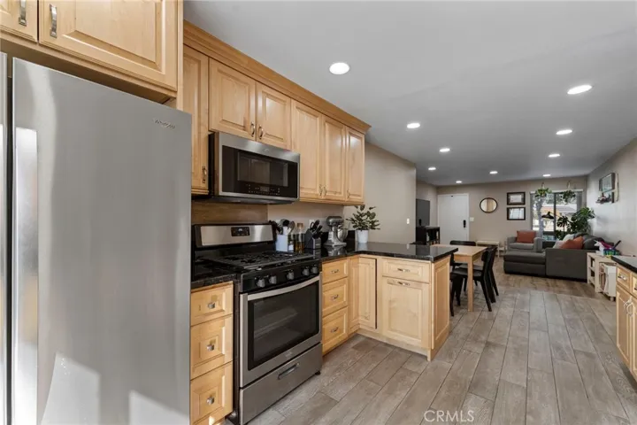 This spacious and meticulously updated 2-bedroom home offers tons of modern comfort and style, along with 1.5 beautifully updated bathrooms with contemporary fixtures and finishes. The home was recently remodeled to include a half bathroom off the master bedroom, creating a convenient master suite, in addition to the full bathroom. Both bathrooms are meticulously updated with Arizona tile flooring and shower and Kohler and Delta appliances. The stunning kitchen boasts plenty of features that were all installed in 2021, such as: updated solid wood cabinetry with elegant hardware, sleek granite countertops, and high-end appliances such as the stove, microwave and dishwasher. This is all complemented by recessed lighting and a large high quality glass slider door to the private patio backyard, allowing in a flood of natural afternoon light. The open-concept layout of this beautiful home features high-end wood laminate flooring throughout, installed in 2021. Both bedrooms are spacious, with floor-to-ceiling mirror slider doors for the ample closet space, and real pine baseboards. Newer dual pane windows throughout the home. The home has a high-end smart climate control system connected to the newer furnace and air conditioning unit, plus, there is an attic fan system for quick, efficient cooling when you get home on those hot summer days. Outside the glass slider door, the spacious and private patio backyard provides a serene retreat for relaxation or gatherings. This yard connects to the spacious 2-car garage which includes convenient laundry facilities, adding to the home’s functionality. Here you will find the water heater with reserve tank, newly installed in 2022, and fixtures ready for a water softener. Take advantage of this rarely-on-the-market opportunity to own a single family home in the Smoketree community, with this move-in-ready gem that combines modern upgrades with practical living spaces, creating a wonderful place for your family to call home.