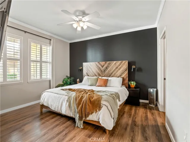 Welcome to this trendy 3-bedroom end-unit townhome in the desirable gated Heather Ridge community! Enjoy no neighbors above and a direct-access 2-car garage for added convenience. Step inside to find new luxury vinyl plank flooring, fresh paint, upgraded light fixtures, crown molding, recessed lighting, plantation shutters, new water heater, and ceiling fans in every room. The spacious great room offers a custom fireplace with a wood mantel, built-in media cabinet, and built-in speakers, perfect for entertaining. The light and bright dining area opens to a private balcony, while the kitchen boasts stainless steel appliances, granite counters, updated cabinetry with new fixtures, a new sink, and breakfast bar seating. The primary suite features a huge walk-in closet and a modern ensuite bath with dual sinks and an upgraded vanity. Secondary bedrooms are well-appointed—one with a charming wood-slat nook—and the laundry room offers extra storage with direct access to the garage featuring epoxy floors. Heather Ridge residents enjoy resort-style amenities including a pool & spa, tennis and basketball courts, clubhouse, park, and BBQ area—plus ample guest parking. HOA covers exterior walls, roof, trash, and landscaping. Conveniently located right off the 14 freeway, near top-rated schools, shopping, and dining. Don’t miss this amazing opportunity to make this home!!!