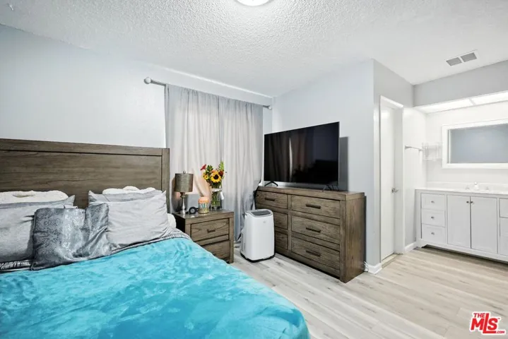 Welcome to this bright and beautifully updated two-story townhome in a quiet, gated community where there’s no one above or below you, and every space feels open, private, and thoughtfully designed. From the moment you step inside, you’re greeted by streams of natural light, warm tones, and a layout that’s as functional as it is inviting. The main level offers a seamless open-concept living and dining area ideal for both relaxing evenings and effortless entertaining. The kitchen has been tastefully renovated with modern quartz countertops, clean-lined contemporary cabinetry, and a cozy breakfast nook that quickly becomes your favorite spot for morning coffee or catching up over a casual meal. Upstairs, you’ll find two generously sized en-suite bedrooms, each with its own full bath, offering comfort and privacy for family or guests. The primary suite features soaring cathedral ceilings and dual closets, giving you extra breathing room and ample storage. An in-unit laundry area is conveniently located on the upper level, while a powder room on the main floor keeps guests comfortable without disturbing your private spaces above. Additional features include gated, tandem two-car parking located directly beneath the unit for maximum convenience, plus low HOA dues of just $275, both value and peace of mind. Perfectly situated for commuters, this home is just minutes from the 405 and 170 freeways, the Van Nuys Metrolink Station, and the shops, dining, and entertainment at NoHo West. Local parks and community amenities are also close by, adding even more to love about the location. This turnkey townhome checks every box: style, function, comfort, and location. Come see it for yourself and feel right at home.