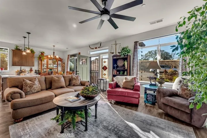 Just one year old, this Highline Home offers 2 bedrooms, 2 baths, and 1,200 sq.ft. on 4.60 gently rolling acres, 90% fenced and ready foryour animals. Built with quality and efficiency in mind, the home features 2×6 construction, 9-foot ceilings, oversized windows, and interior wall insulation. Owned solar power, Saddleback Community Water, and 30-amp RV hookups make this property both sustainable and versatile. A 2.5-ton HVAC system keeps the home perfectly climate-controlled year-round. 1,500-gallon engineered septic system, generator wired, plus an electric vehicle wired, and two fire hydrants for peace of mind, one conveniently located at the corner of the home and another at the road. Safety is further enhanced with a fire alarm system and ceiling sprinklers throughout.