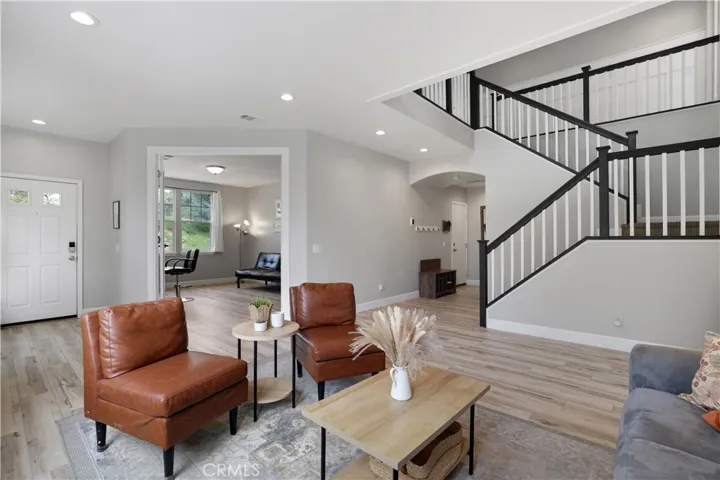 This immaculate North Lake STUNNER has been beautifully updated and sits on a corner lot in a welcoming cul-de-sac street with OWNED SOLAR! It can also be sold almost fully FURNISHED! The exterior of the home has just been freshly painted and boasts nearly 3,000 sf of light and bright living space featuring 4 bedrooms, 3 FULL bathrooms, a bonus room/office, loft, office nook, and 3 car tandem-garage. You have a downstairs bonus room/office with glass French doors currently used as a salon with its own sink and could easily be converted to a 5th bedroom, which would be convenient with a full bathroom downstairs. The living room flows seamlessly into your open concept kitchen which opens up to the separate family room featuring beautiful built-in shelving and a fireplace adding the perfect touch to the home’s coziness and comfort. Your kitchen features granite countertops, a center island, elegant two-tone cabinetry with champagne bronze hardware, a gas stovetop, range hood, microwave, oven, pantry, and a stainless steel fridge included in the sale. Head upstairs where you have a spacious loft with ceiling projector and screen, a dedicated office nook, laundry room, all 4 bedrooms, and 2 more full bathrooms. Your primary suite has high ceilings, a BALCONY to soak in beautiful sunset views, and double barn doors to a very spacious bathroom with a remodeled walk-in shower, soaking tub, spacious walk-in closet, and double sink vanity with separate make-up station. Your laundry room is conveniently located upstairs with its own sink and washer/dryer included. Your backyard features a covered patio, plenty of grass, a playground, spacious side yard, and views! The HOA amenities include a clubhouse, swimming pool and spa, basketball court, picnic area, playground, and large grass field. Also nearby is the renowned Castaic Lake, Castaic Sports Complex, Castaic Aquatic Center, and plenty of restaurants, strip malls, and award-winning schools. Schedule your showing to see this rare gem before it’s gone!