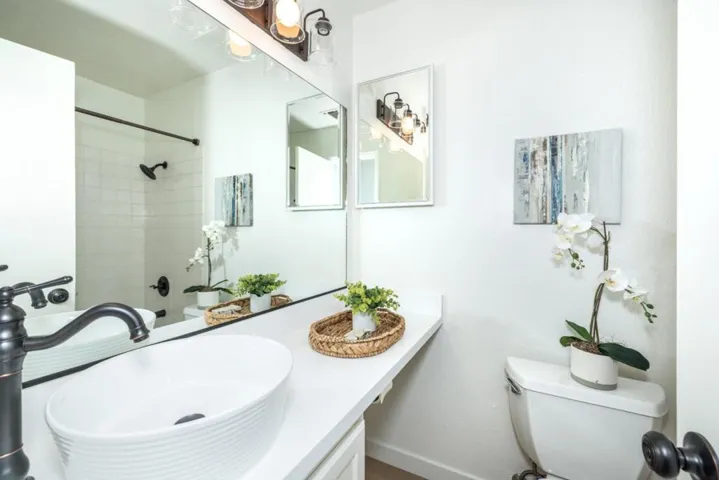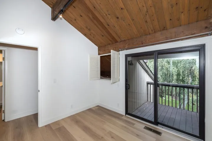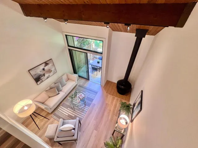 Come see this impeccably updated townhouse centrally located near downtown Mountain View and nestled in a tranquil community amongst the redwoods. Truly an oasis in the heart of Silicon Valley and just a short stroll to dining, shopping, transportation, nature trails, and so much more. Wonderful floor plan featuring soaring open beam ceilings and a large sliding glass door leading to a private patio overlooking a beautiful green belt. Quality throughout, including dual pane windows, central air conditioning, Quartz countertops, new flooring, and freshly painted. Situated in highly desirable Cypress Point Villas community featuring a beautiful gated park of grassy fields, redwood trees, and a heated swimming pool. Nature lovers can also enjoy the convenience of the Stevens Creek trail for biking, long walks, and easy access to multiple parks and playgrounds.