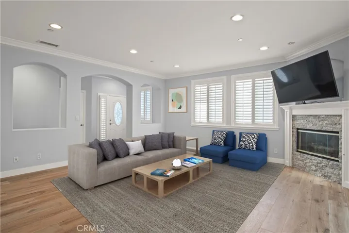 This detached townhome enchants from the moment you step inside. French oak wood floors lead you to a spacious living room with a cozy fireplace—perfect for leisurely mornings or movie nights with loved ones. Double glass doors open to an intimate rear yard, featuring stunning stonework ideal for outdoor dining or quiet relaxation. Just around the corner, the remodeled kitchen dazzles with timeless finishes, sleek new countertops, a large pantry, a charming garden window, and a welcoming breakfast bar—the true heart of the home. Upstairs, convenience and comfort await with a thoughtfully placed laundry area, two bright bedrooms, and a beautifully updated hall bath. The primary suite feels like a personal retreat, boasting soaring ceilings, a romantic Juliette balcony, and a double-sided fireplace that warms both the bedroom and the spa-like ensuite, complete with a luxurious Jacuzzi tub. And the walk-in closet? The largest we’ve ever seen—an absolute dream! Bathed in natural light from skylights and adorned with fresh, airy details, this thoughtfully designed home blends charm and elegance, creating a bright and inviting space to make lasting memories.