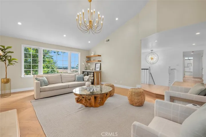 friends and family. A spacious and airy living room serves as the heart of the home, boasting soaring