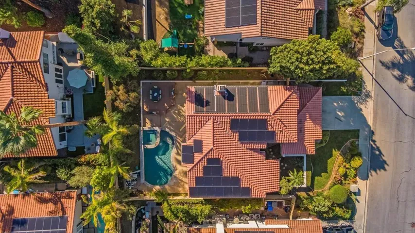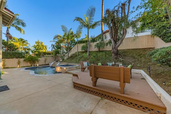 Elegant finishes & a functional floor plan combine w/ essential upgrades, inviting outdoor living, & prime suburban convenience to deliver an unbeatable lifestyle in this beautifully upgraded home. Bedroom/office + full bath downstairs; spacious primary ensuite & 2 guest beds up. City-approved plans for a ground-floor primary suite. Living & dining rooms feature 20-ft vaulted ceilings. Kitchen flows seamlessly to the family room & outdoor entertaining area. Backyard boasts a newer PebbleTec pool w/ color lighting, waterfalls, & poolside deck. New LED lighting & fresh paint throughout. Luxurious hardwood & travertine down, new carpet up. Bright white kitchen w/ granite counters & SS appliances. Spa-like primary bath w/ jacuzzi. New roof, paid solar for home & pool, & newer HVAC. Quiet cul-de-sac location just 1 block from Olivenhain Pioneer ES, Digueno MS, Sun Vista Park, & private tennis & pickleball courts. The flexible layout includes a downstairs bedroom or office with a full bath, perfect for guests or remote work, and three bedrooms upstairs, including a spacious primary ensuite and two guest rooms. Completed, city-approved plans allow for the addition of a generous ground-floor primary suite, offering excellent flexibility for the future. The living and dining rooms feature soaring 20-foot vaulted ceilings, while the kitchen flows seamlessly into the family room and out to the backyard—ideal for everyday living and entertaining. The expansive backyard is built for relaxation and fun, showcasing a newer PebbleTec pool with color lighting, cascading waterfalls, and a poolside deck for outdoor dining and sunbathing. Interior highlights include new LED lighting, fresh paint throughout, luxurious hardwood and travertine flooring downstairs, and new carpet upstairs. The bright white kitchen features granite countertops and stainless-steel appliances, while the spa-like primary bathroom offers a jacuzzi tub and elegant finishes. Recent fundamental upgrades provide lasting value and peace of mind, including a new roof, fully paid solar for both home and pool, and newer HVAC systems. Located on a quiet cul-de-sac just one block from Olivenhain Pioneer Elementary, Digueno Middle School, Sun Vista Park, and the RSF Vista community’s private tennis and pickleball courts, this home perfectly combines comfort, quality, and convenience in one of Encinitas’ most sought-after neighborhoods.