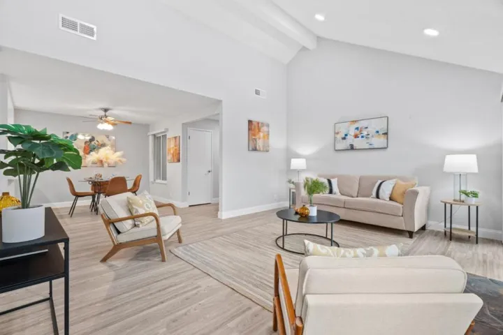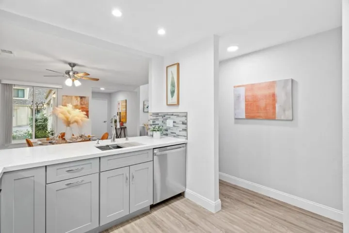 Beautifully remodeled townhome-style condo in the popular Terrace Villas community! This rare 3-bedroom, 2-bathroom home offers 1,495 SF of living space with a private 2-car attached garage. These units seldom come on the market! The stunning gourmet kitchen features quartz countertops with a designer tile backsplash, recessed lighting, breakfast bar, stainless steel smart appliances, custom soft-close cabinetry, and a touch-activated faucet. The open layout flows into the formal dining area and living room with vaulted ceilings and a cozy wood-burning fireplace. Retreat to the large primary suite with a huge walk-in closet, updated dual-sink vanity, tile flooring, and a granite slab shower. The hall bathroom is equally impressive with a modern vanity, updated fixtures, and a jetted soaking tub. Spacious upstairs bedroom with closet plus an additional storage area. Other upgrades include double-pane windows, updated LVP flooring, new furnace and central A/C, and water softener. The private fenced backyard and side yard feature low-maintenance landscaping, perfect for relaxing or entertaining. Located just a short walk to the new Village Oaks shopping and dining area, this home has it all, modern upgrades, a functional floor plan, and a fantastic location.